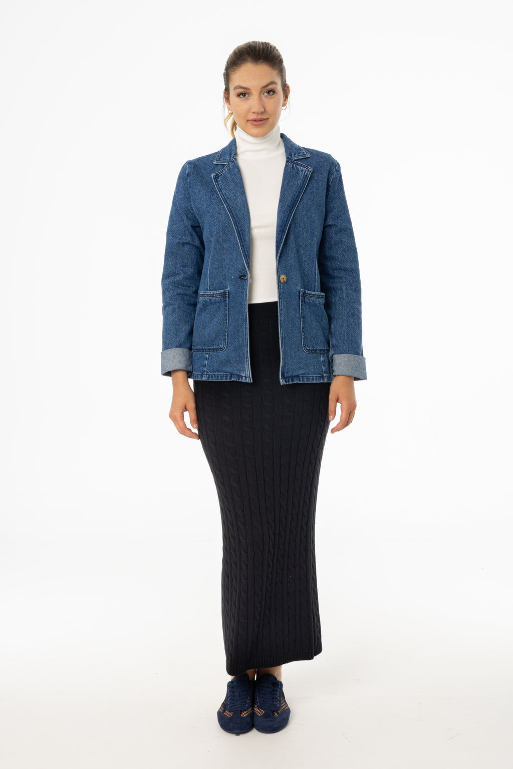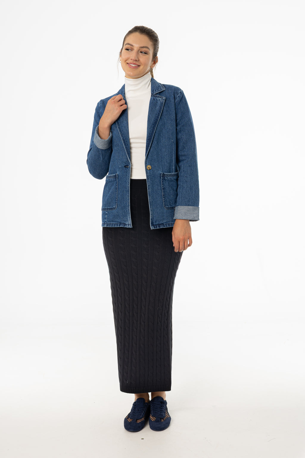Knits aren’t just for tops. This cable knit skirt pairs texture with comfort, making it a fresh alternative to basics. Style it with matching knits or mix it with crisp shirts for contrast. A playful yet practical addition to your wardrobe.