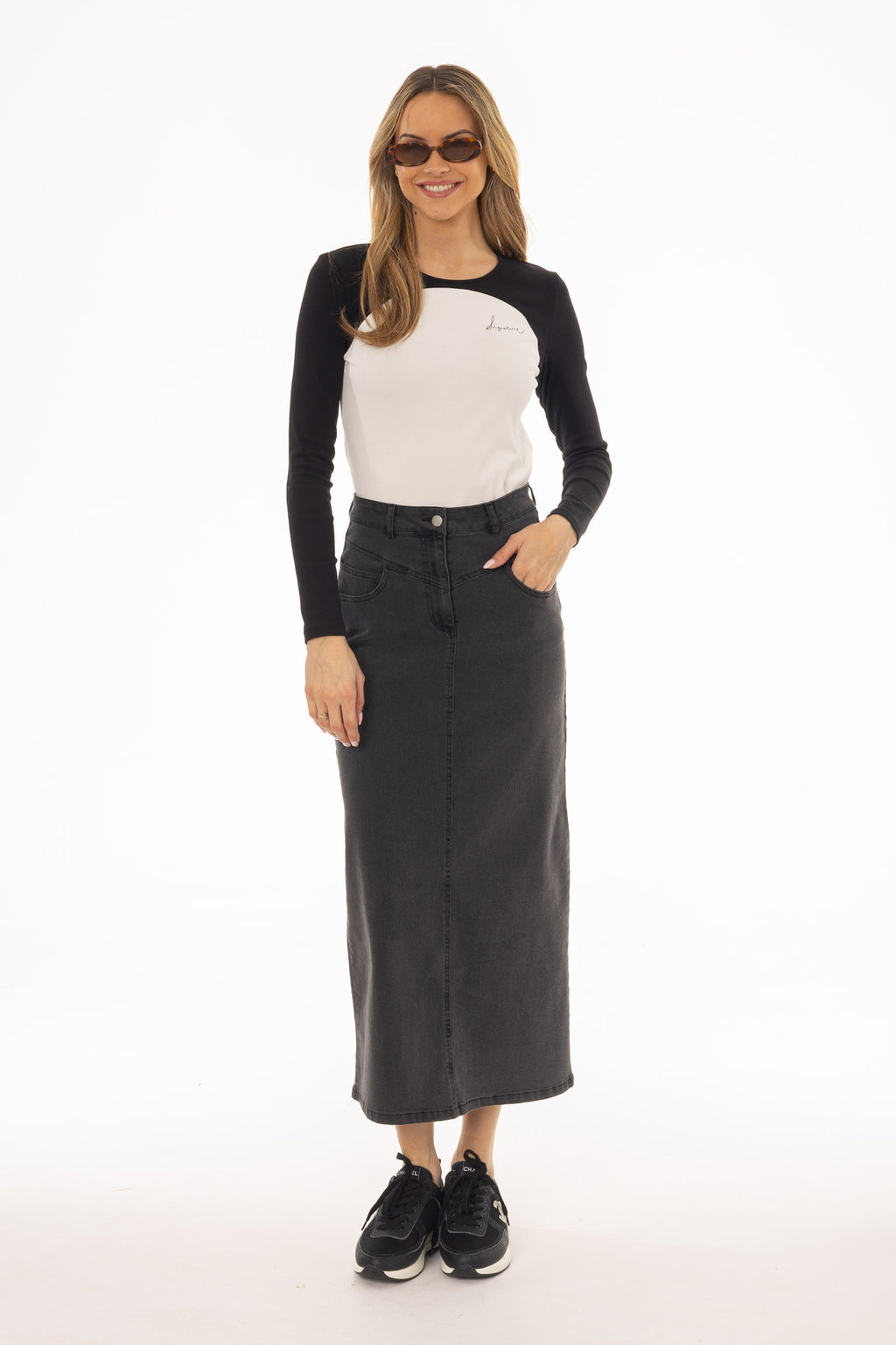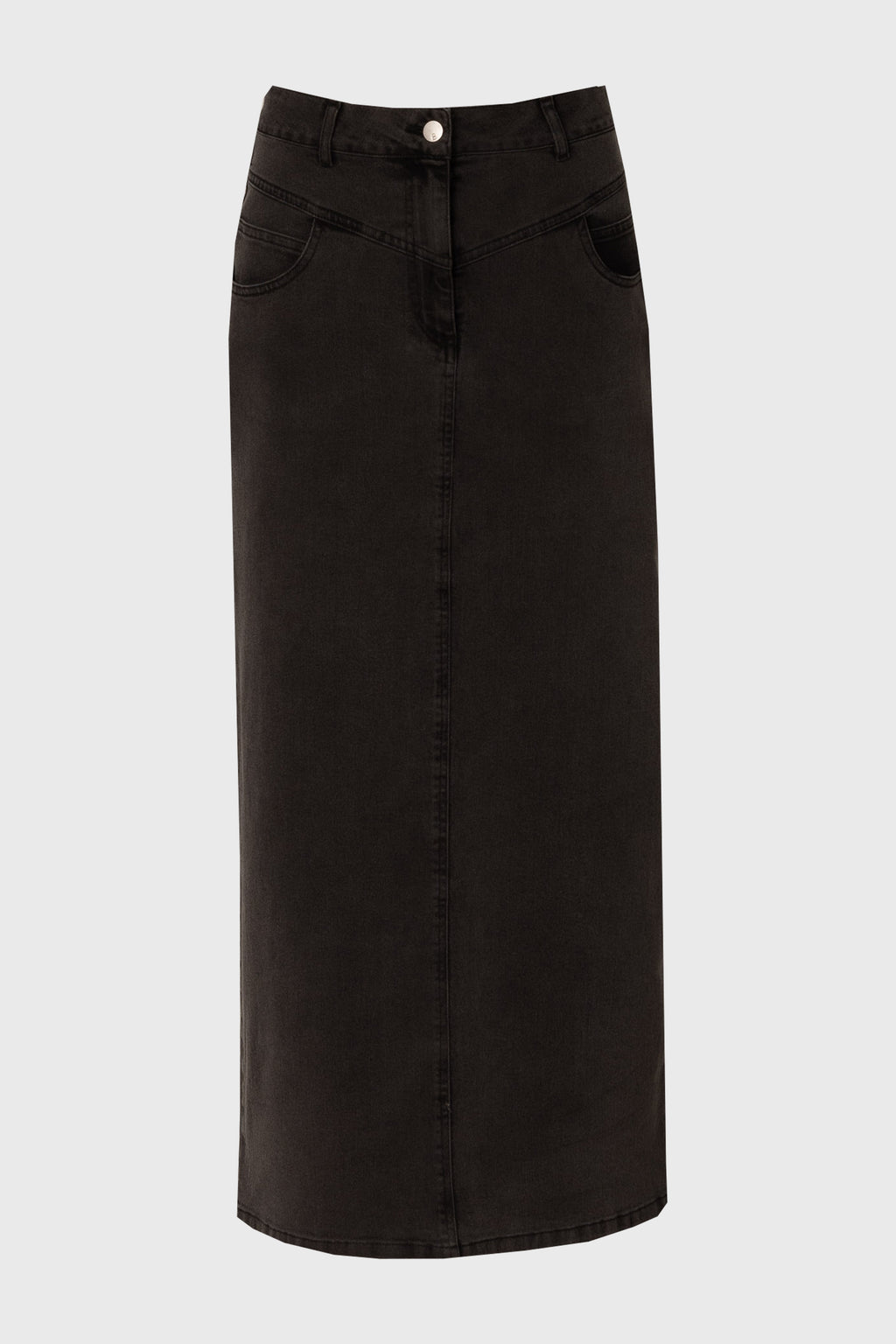 Black Coin Pocket Denim Maxi Skirt
