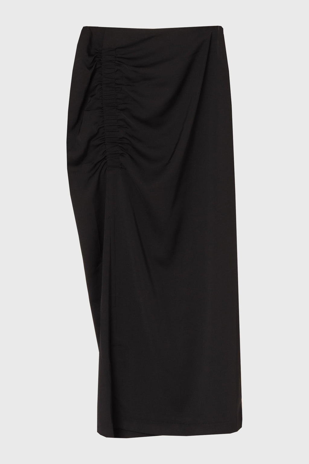 Black Front Ruched Maxi Skirt