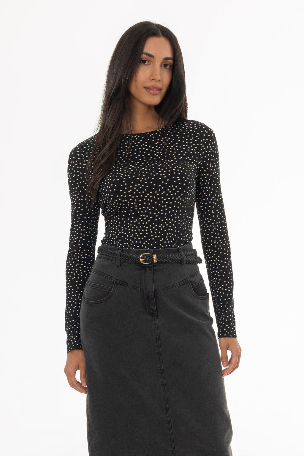 Polka dots keep this tee cheerful and timeless. It adds a pattern without overwhelming your outfit. Easy to pair with denim skirts and simple accessories. A reliable go-to for everyday wear.