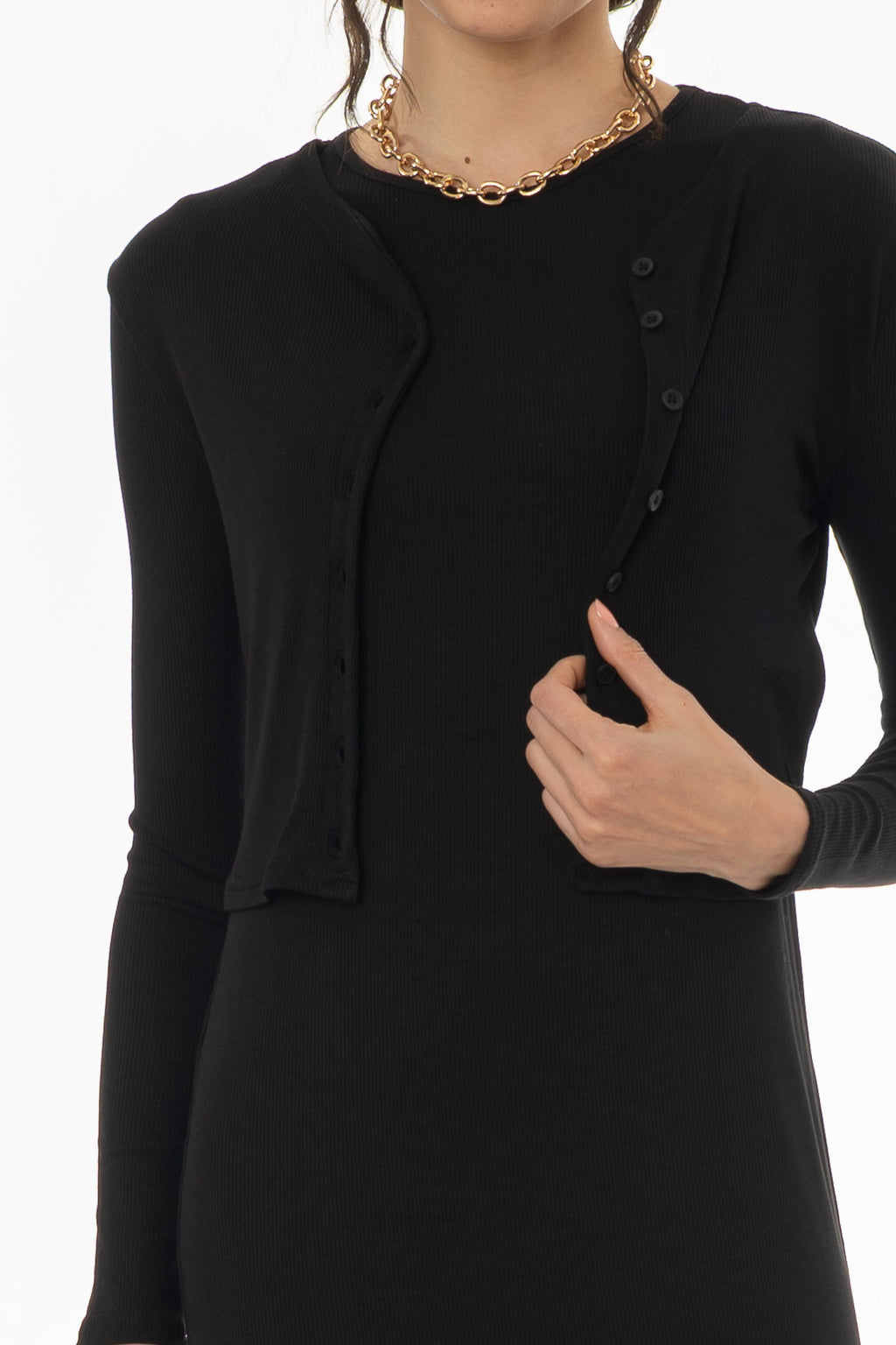 Searching for the perfect layer? Our slim-fitting cropped ribbed long sleeve cardigan is an essential for any wardrobe. Button up in style with matching-color buttons! No wardrobe is complete without a cardi!
