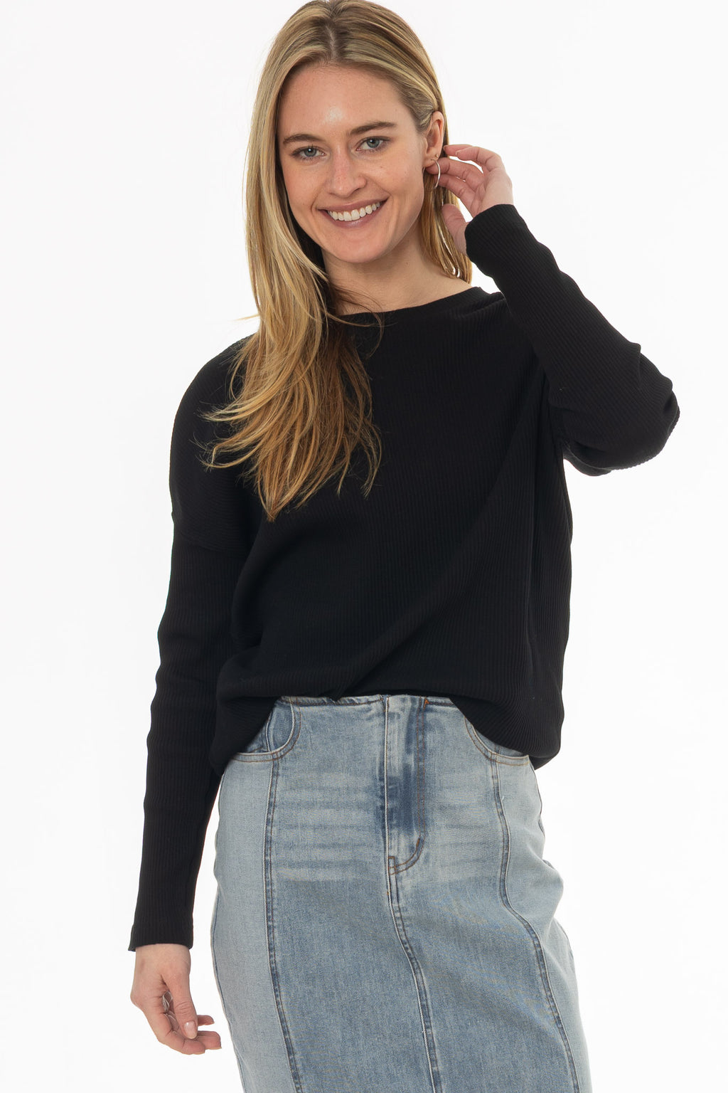 A relaxed tee with dolman sleeves that drape comfortably. Pair it with a printed skirt or a denim maxi for afternoon errands or casual meet-ups. Easy to style and easy to wear.