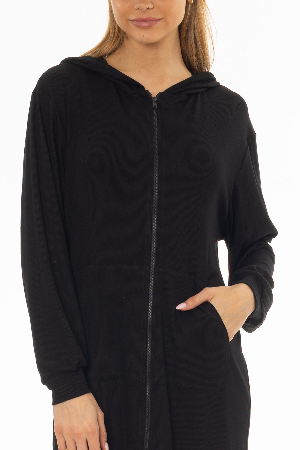 Ideal for travel days or early morning coffee runs. The ribbed fabric keeps it cozy while still summer-appropriate. Pair it with sneakers and a baseball cap.