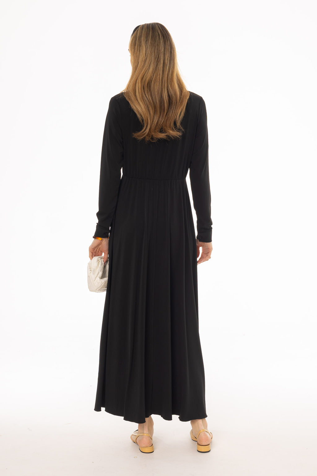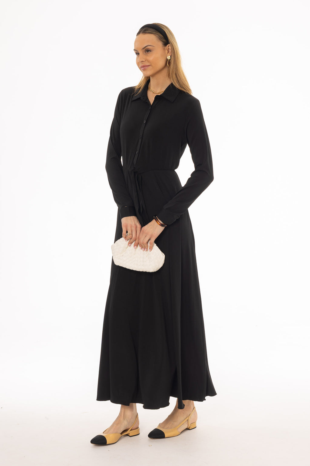 Black Slinky Button Tie Maxi Dress
