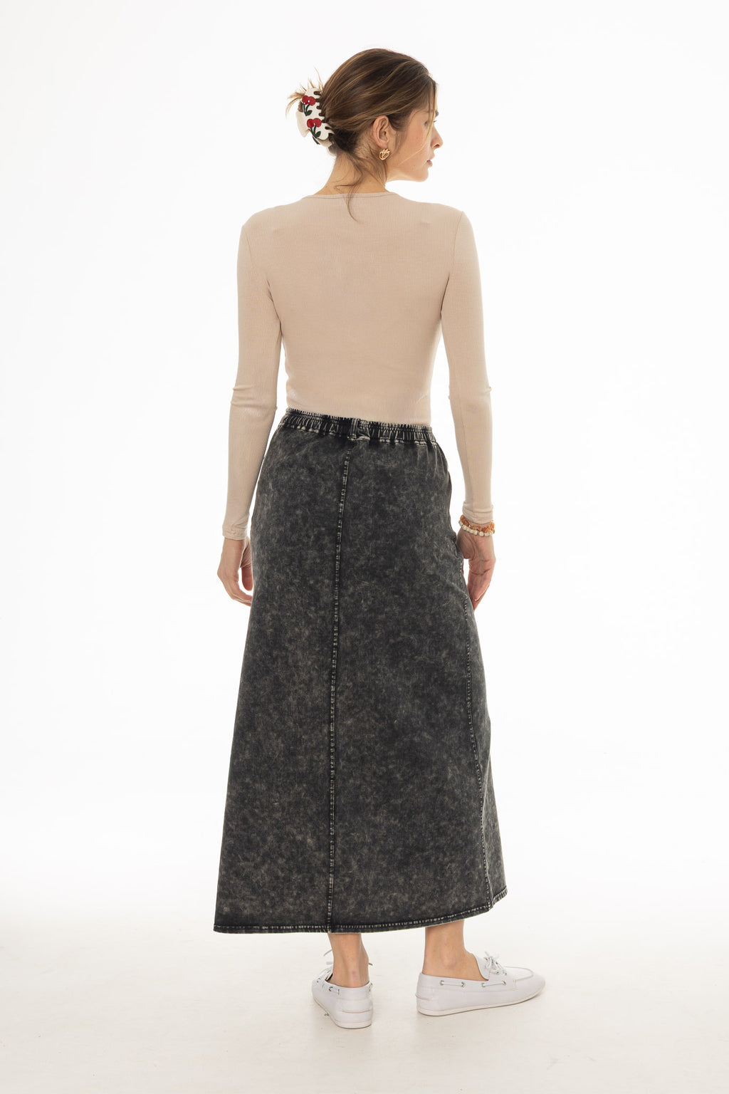 Stretch Cotton Acid Wash Maxi Skirt
