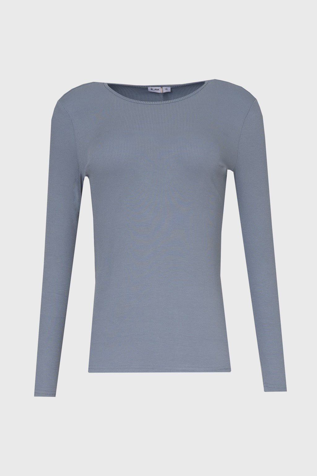 Blue Long Sleeve Ribbed T-Shirt