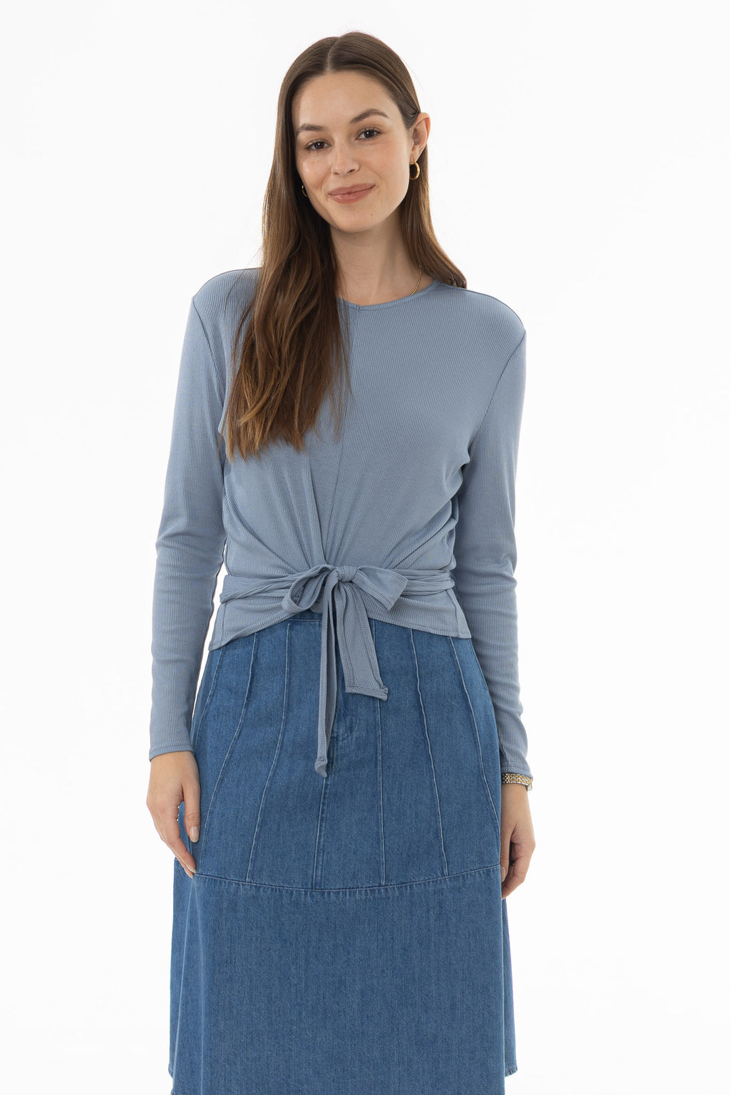 Soft, ribbed, and a little flirty, this tie-front tee is perfect for casual days with a touch of charm. Running errands? Layer it over a midi skirt and slip it into sandals. Grabbing coffee with friends? Tuck it into a flowy maxi skirt and add delicate gold jewelry. For an afternoon picnic, pair it with a linen wrap skirt and woven flats. However you style it, this tee is your go-to for laid-back yet put-together outfits.