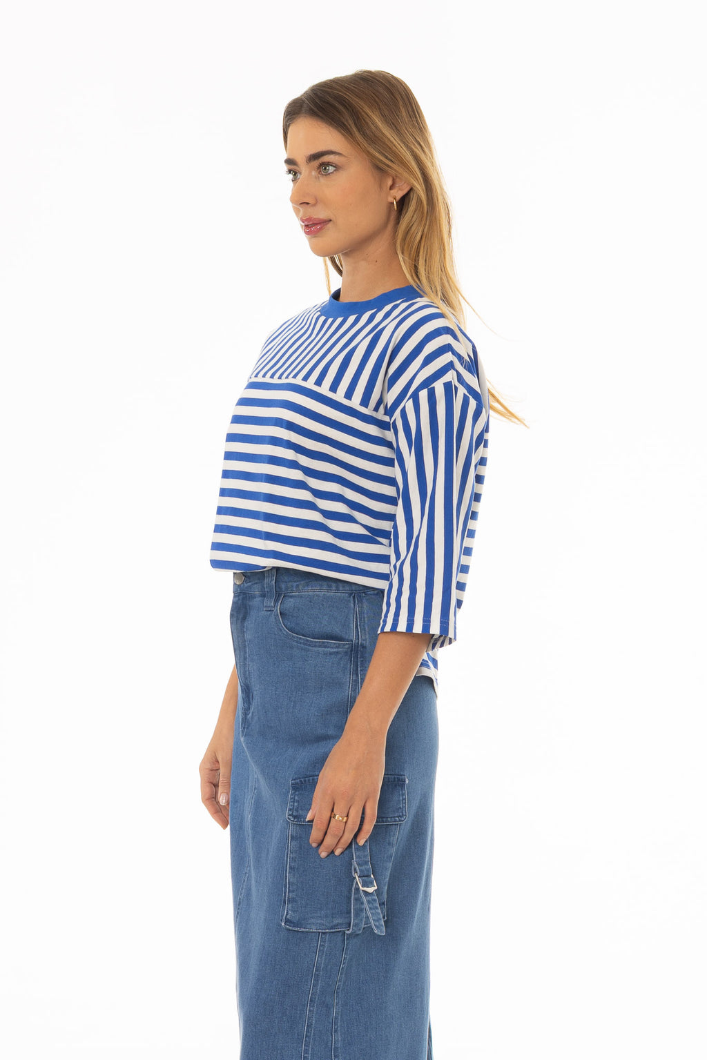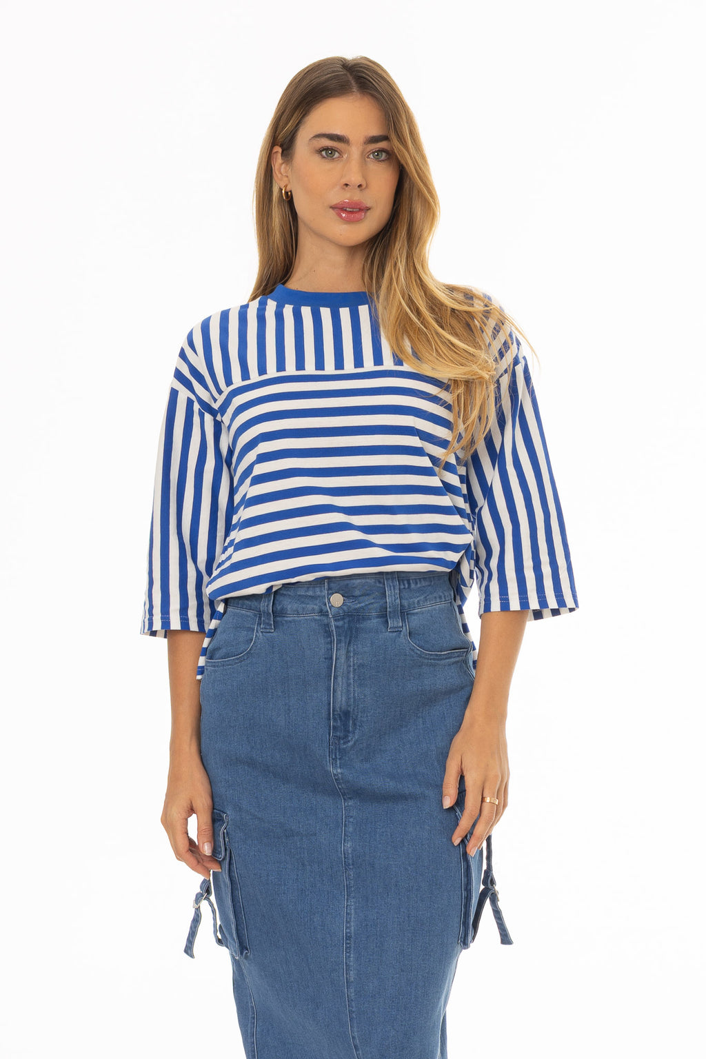 Stripes and contrast details add life to a classic tee. Tuck in, layer, or wear solo for an easy, polished look. Perfect for casual days that still deserve a little style.
