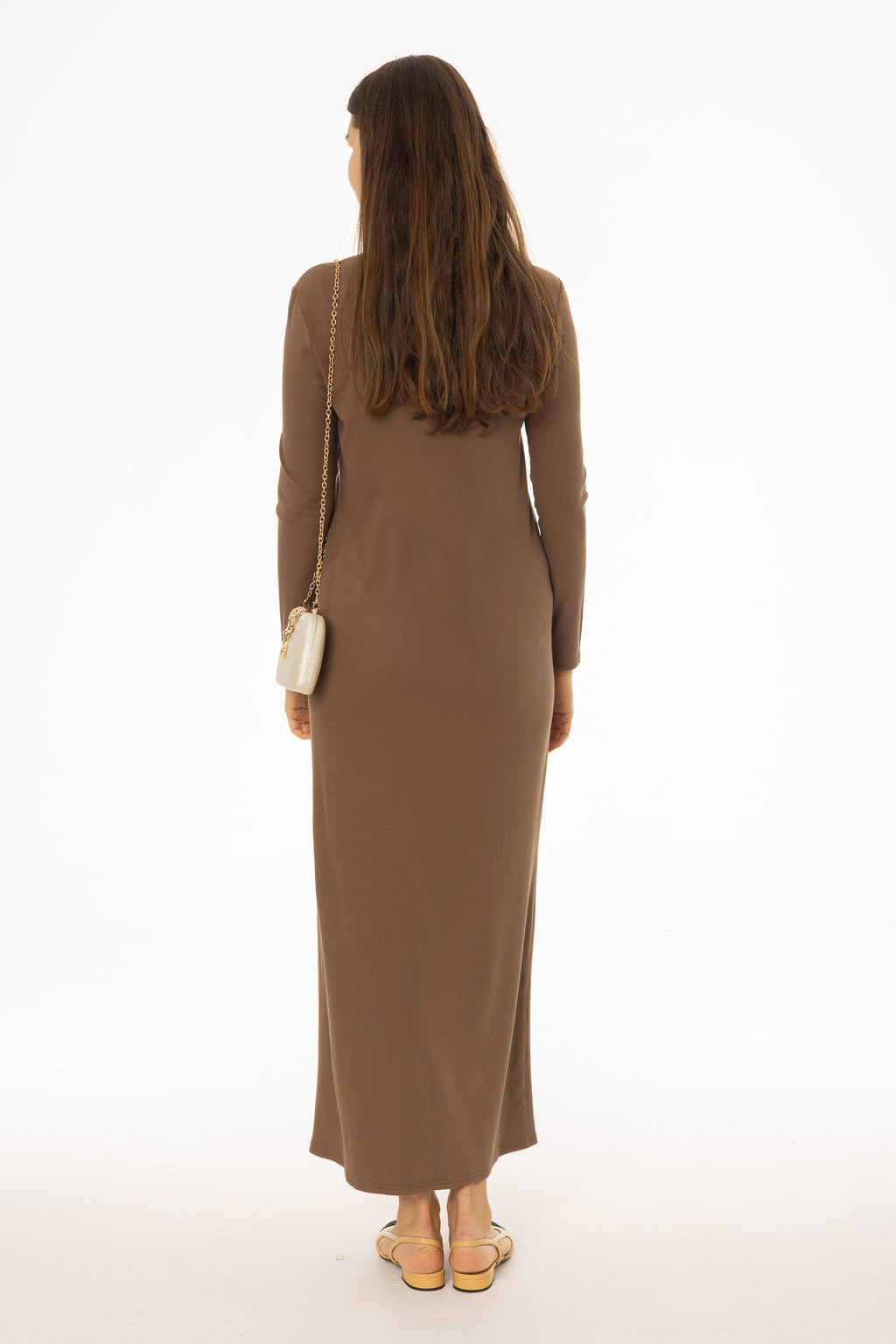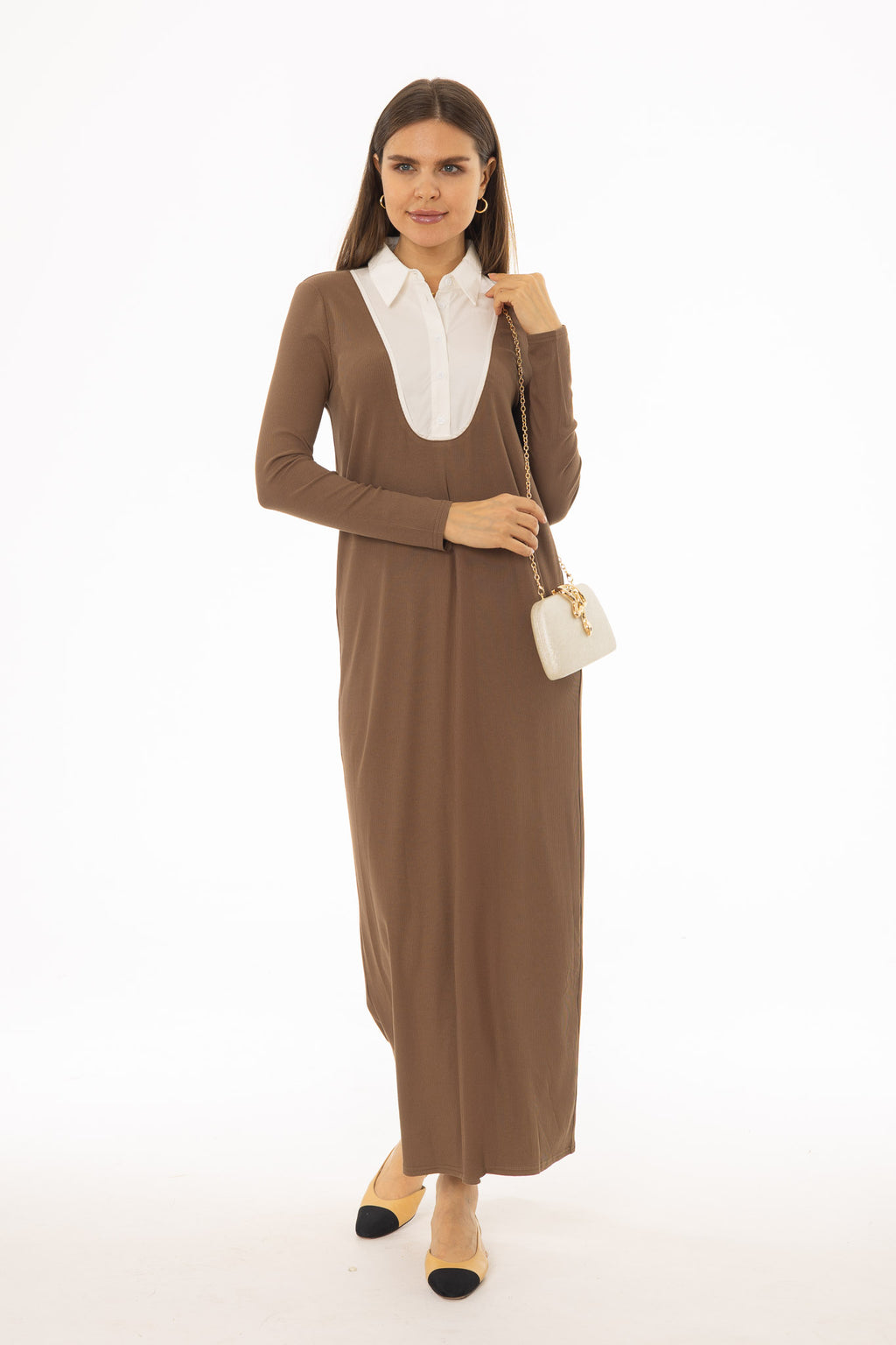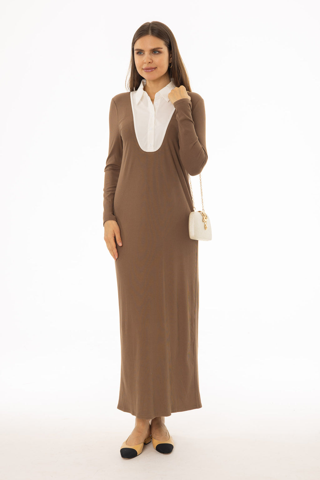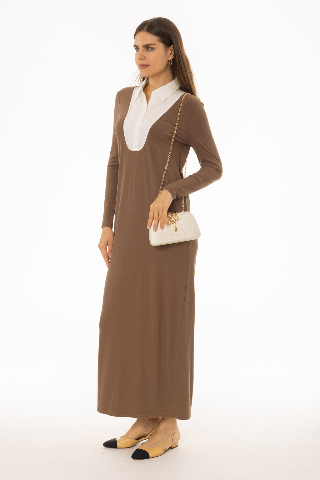 Brown Combo Blouse Maxi Dress