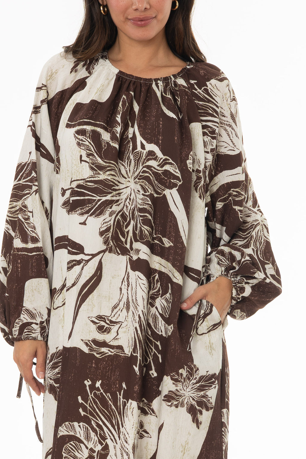 Balloon sleeves add volume while the oversized fit keeps it airy for summer. The floral print makes it eye-catching without feeling heavy. Slip it on and you’re ready for the day. Comfortable and memorable at the same time.
