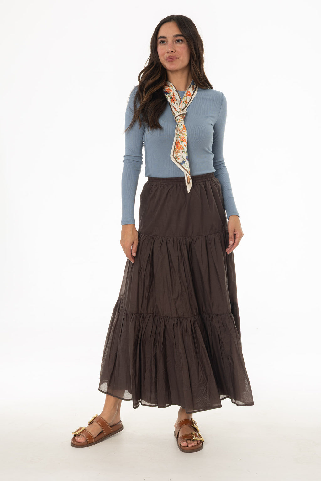 Soft chiffon layers create gentle movement as you walk. It feels airy and dressy without being complicated. Pairs beautifully with a blouse and flats. A skirt that makes your outfit feel special.