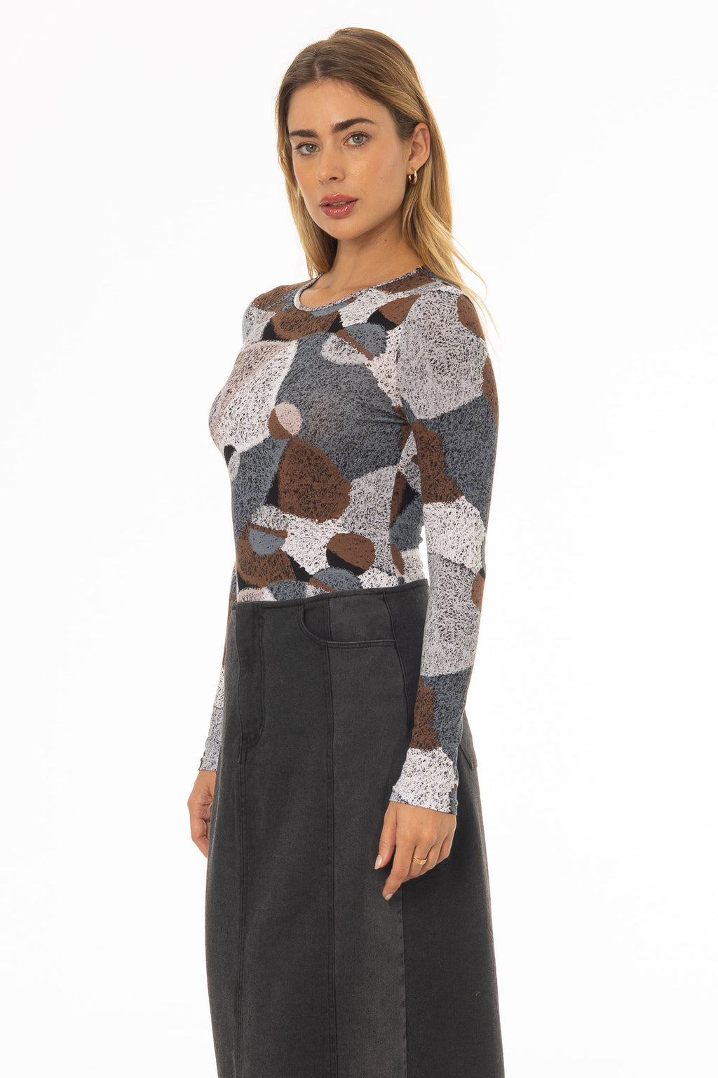 Add subtle interest to your resort wardrobe with this Brown Multi printed tee. Throw it on for walking through local markets, sipping coffee, or exploring the streets. Pair it with skirts for a relaxed yet polished look. Earthy tones, easy styling, and soft comfort all in one.