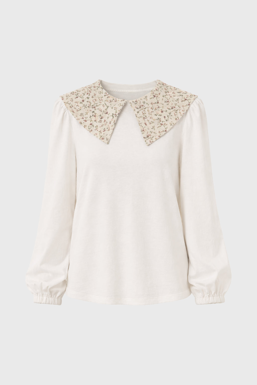 A floral print with a contrast collar gives this top a charming twist. Style it with a maxi skirt for outdoor lunches or afternoon gatherings. A sweet detail that adds personality.