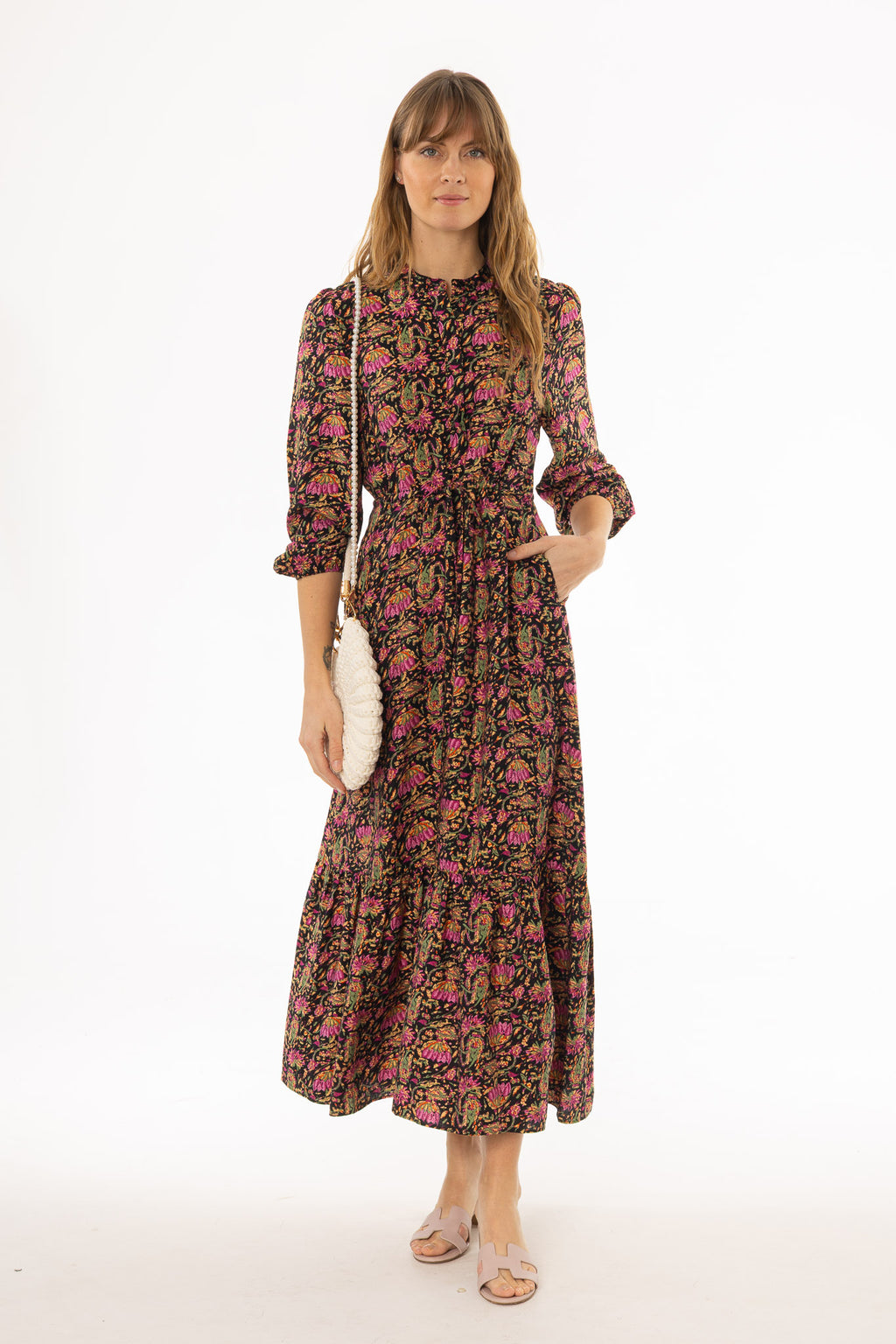 A floral maxi dress that feels ready for warm sunny days. Wear it for outdoor lunches, beachside dinners, or summer celebrations. Just add a woven bag and delicate accessories.