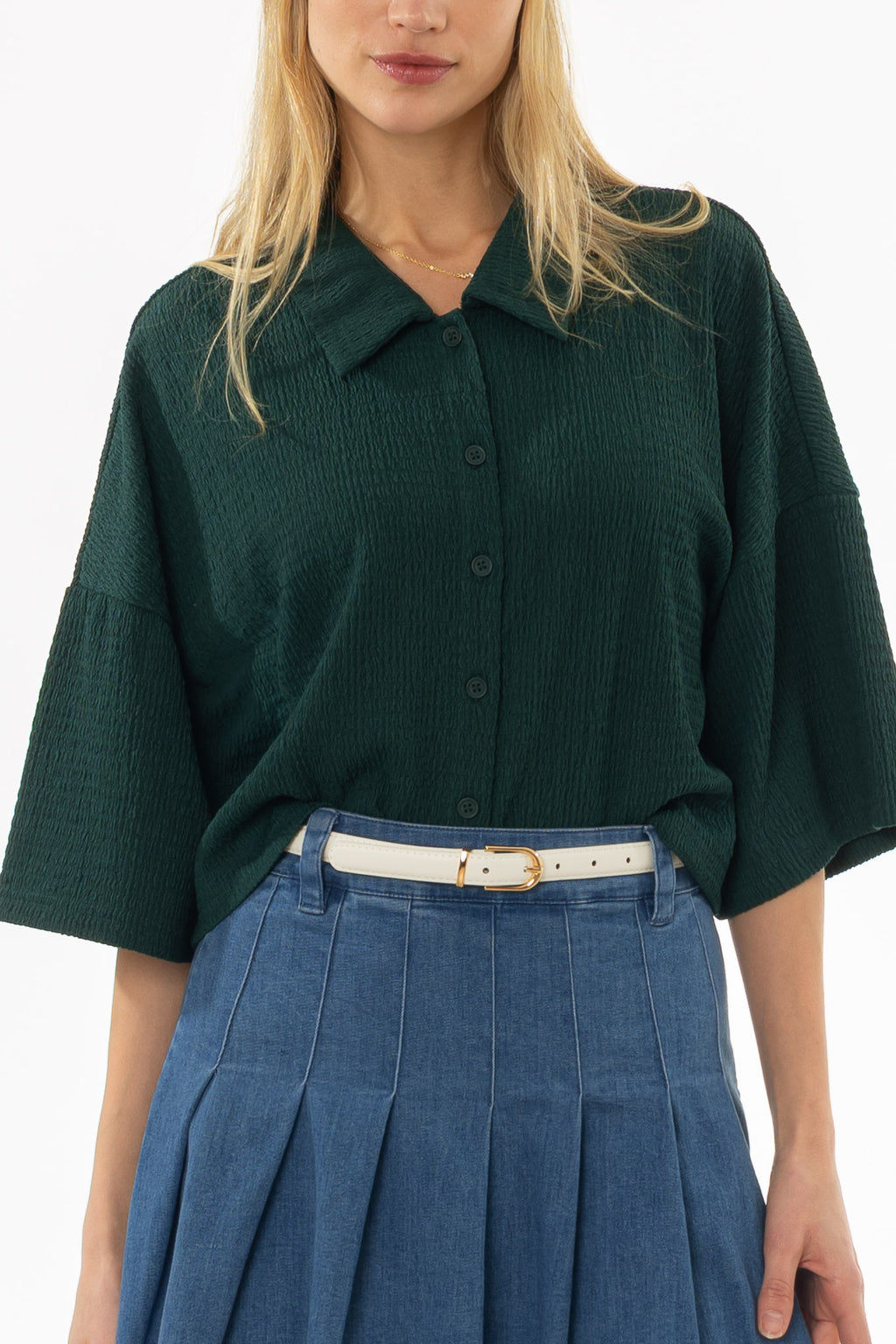 Kelly Green Seersucker Cropped Blouse