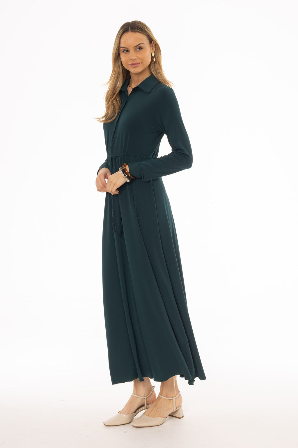 Teal Slinky Button Tie Maxi Dress