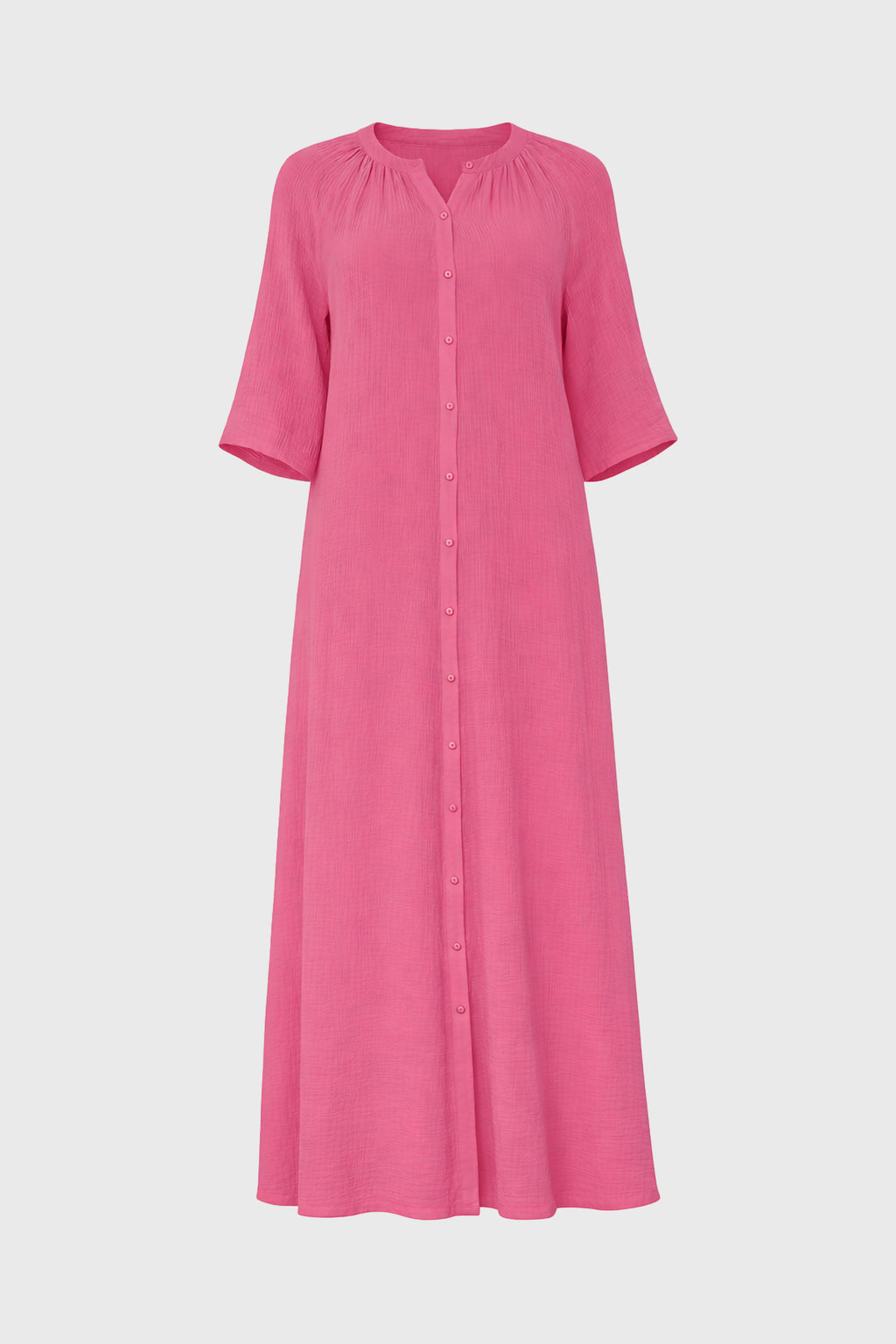 Hot Pink Gauze Flare Sleeve Maxi Dress