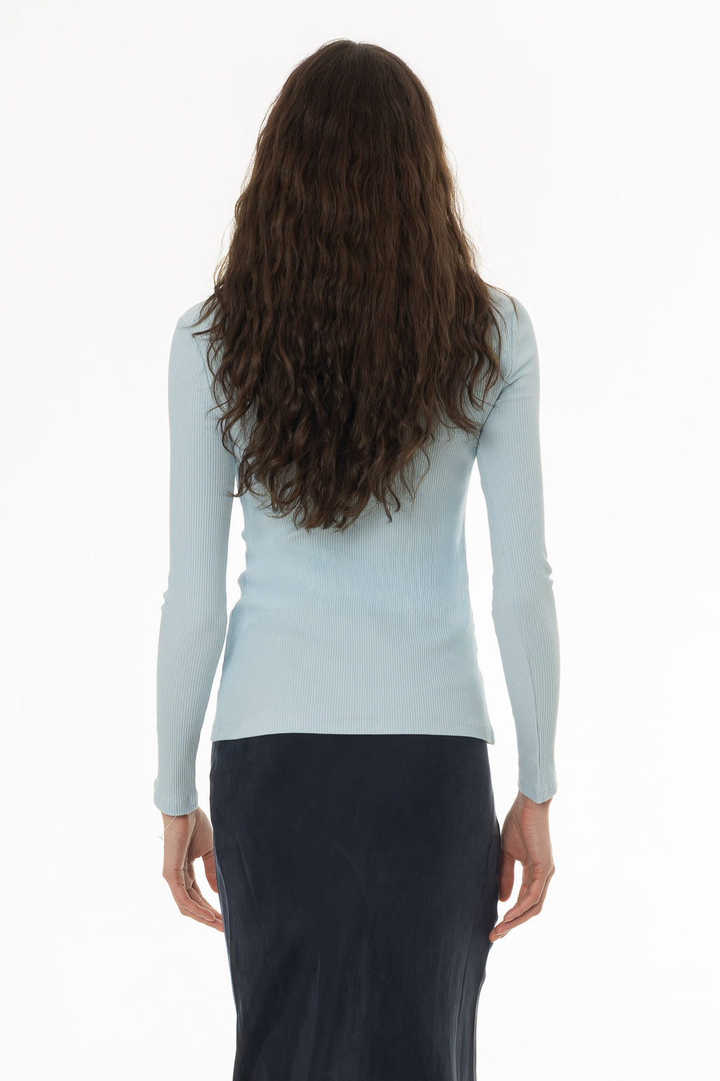 Ribbed texture gives it structure while the zipper adds a modern detail. Easy to dress up or down with skirts. A sleek, versatile piece.