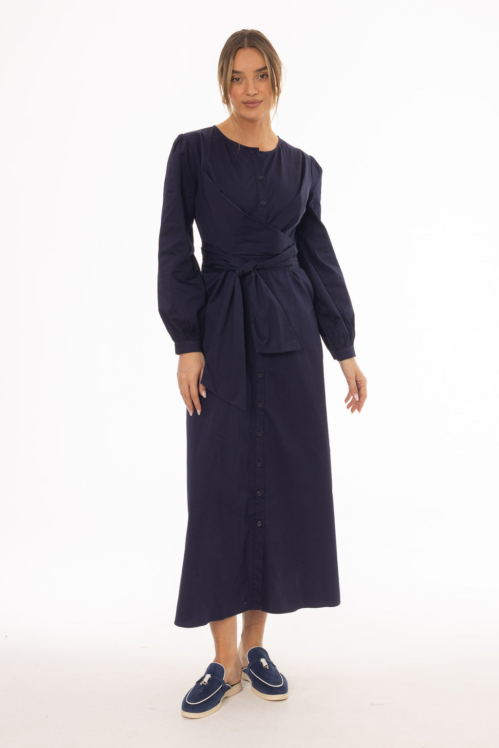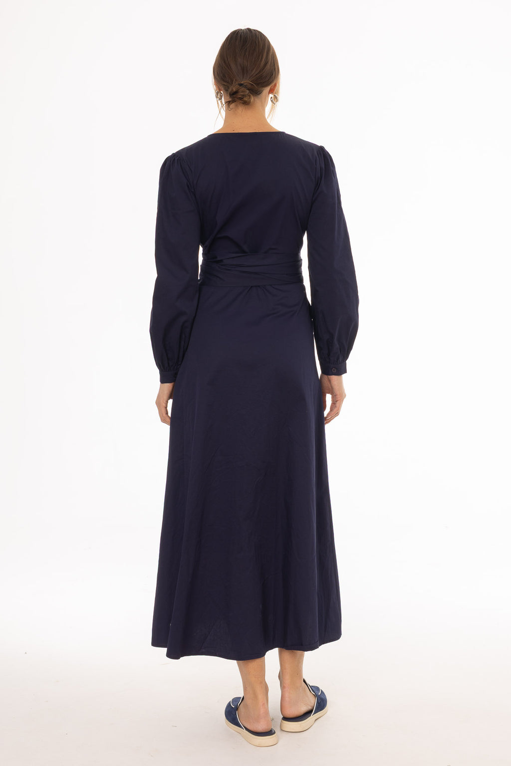 Navy Drape Cotton Maxi Dress