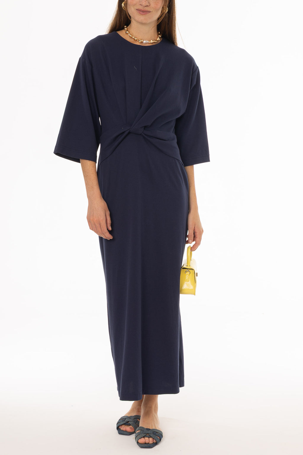 Navy Front Tie Knot Maxi Dress