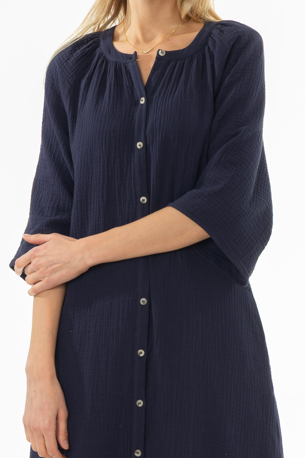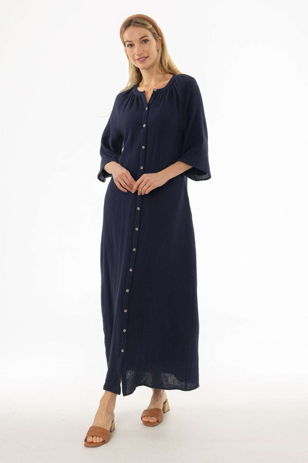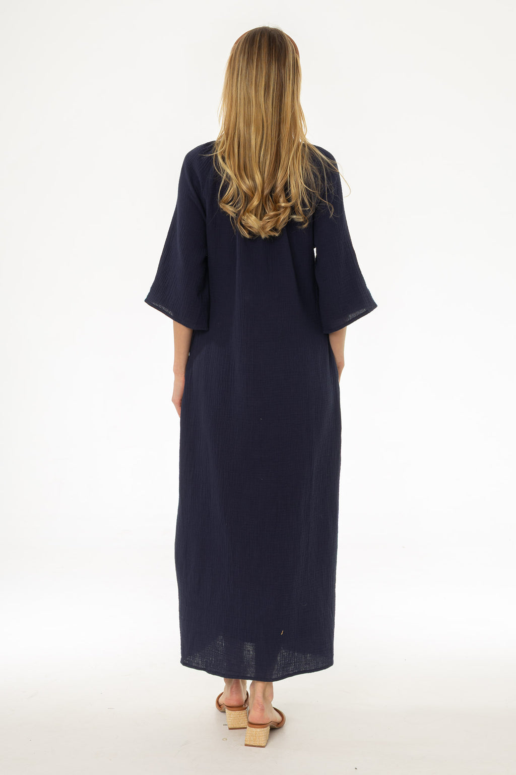 Made from soft gauze fabric that keeps things light in the heat. The flared sleeves add movement and a little drama as you walk. Perfect for beachside dinners or summer evening gatherings.