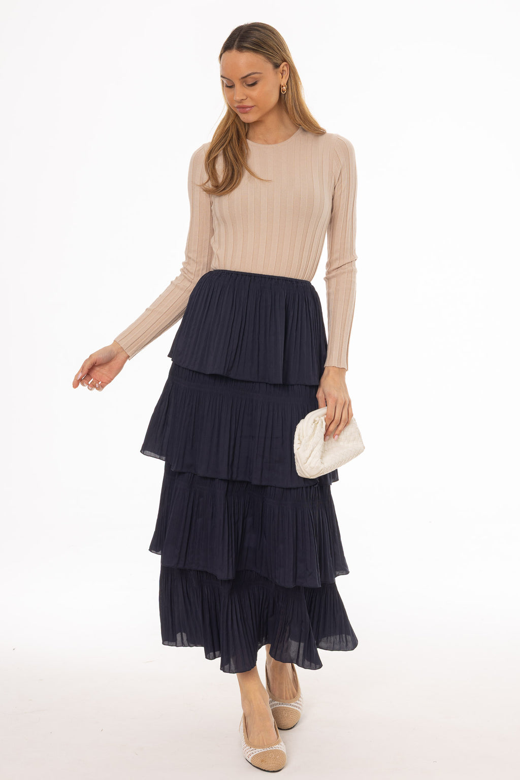 Soft ruffles add movement and a feminine touch as you walk. The lightweight fabric drapes beautifully, creating a fluid silhouette that feels effortless yet refined.