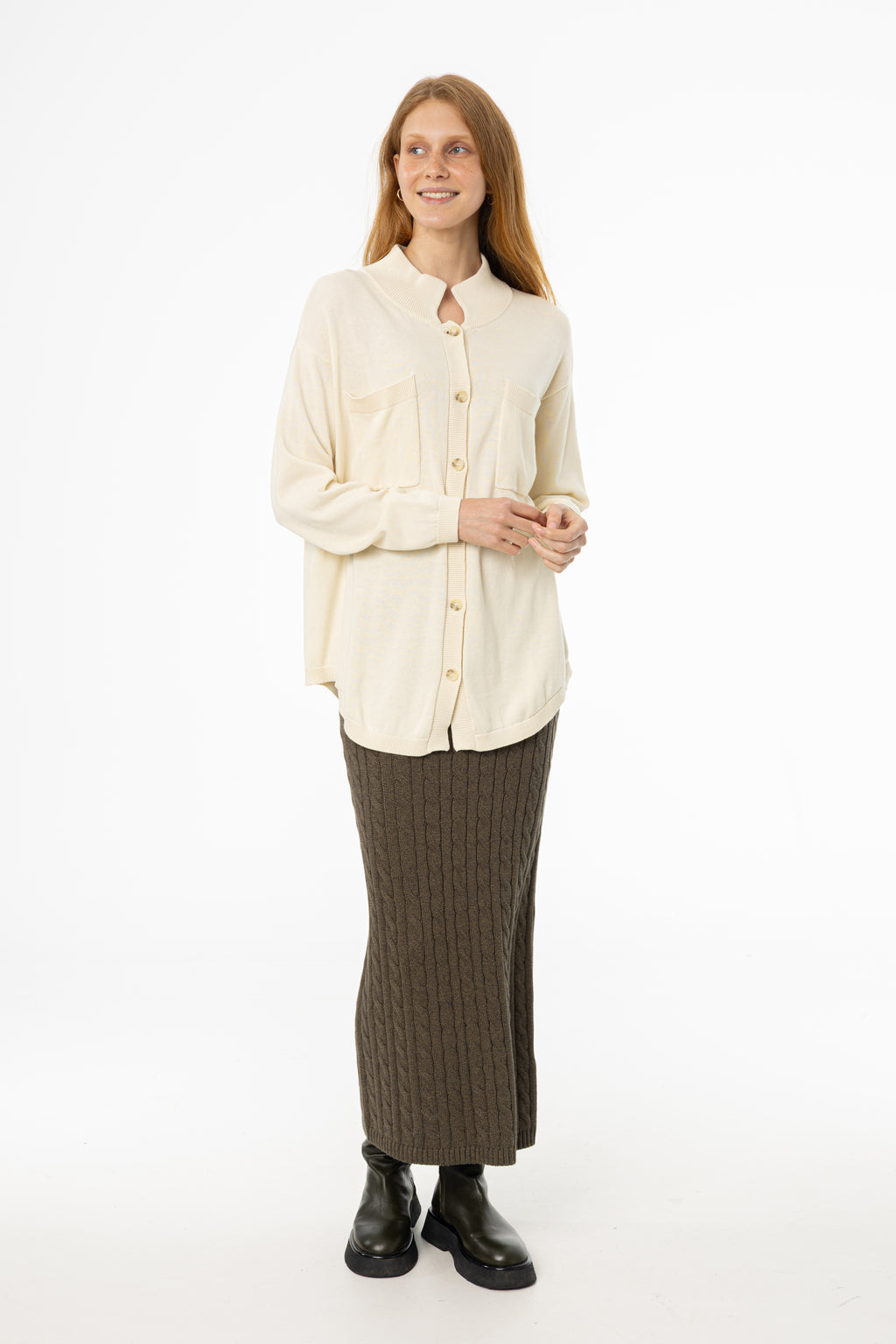 Knits aren’t just for tops. This cable knit skirt pairs texture with comfort, making it a fresh alternative to basics. Style it with matching knits or mix it with crisp shirts for contrast. A playful yet practical addition to your wardrobe.
