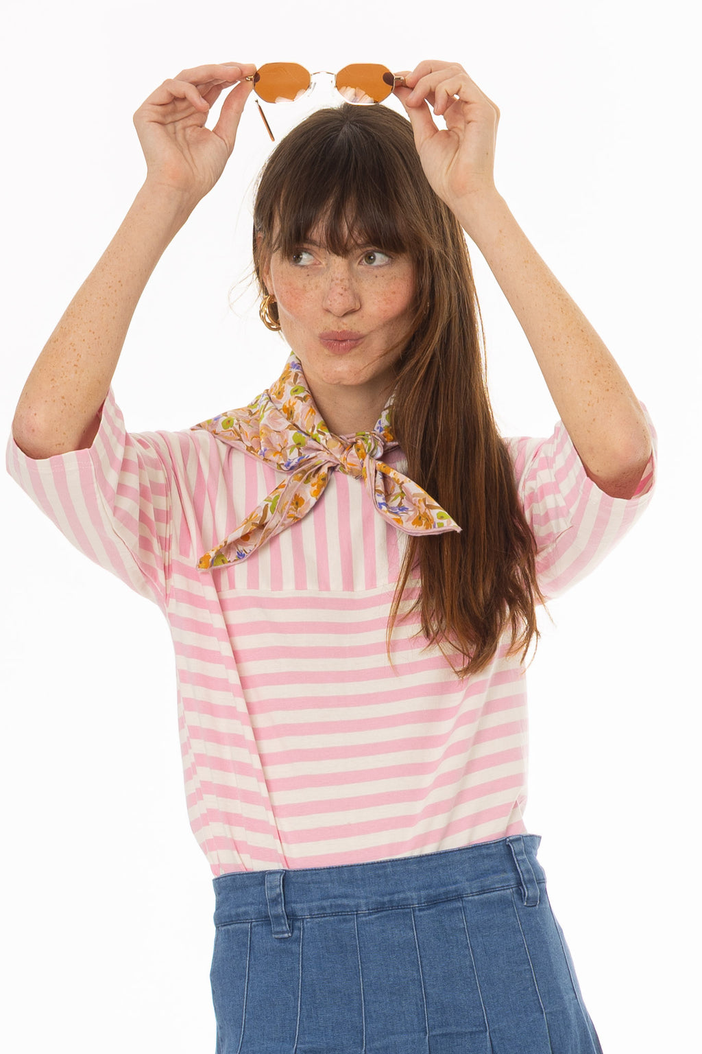 Pink Striped Contrast T-Shirt