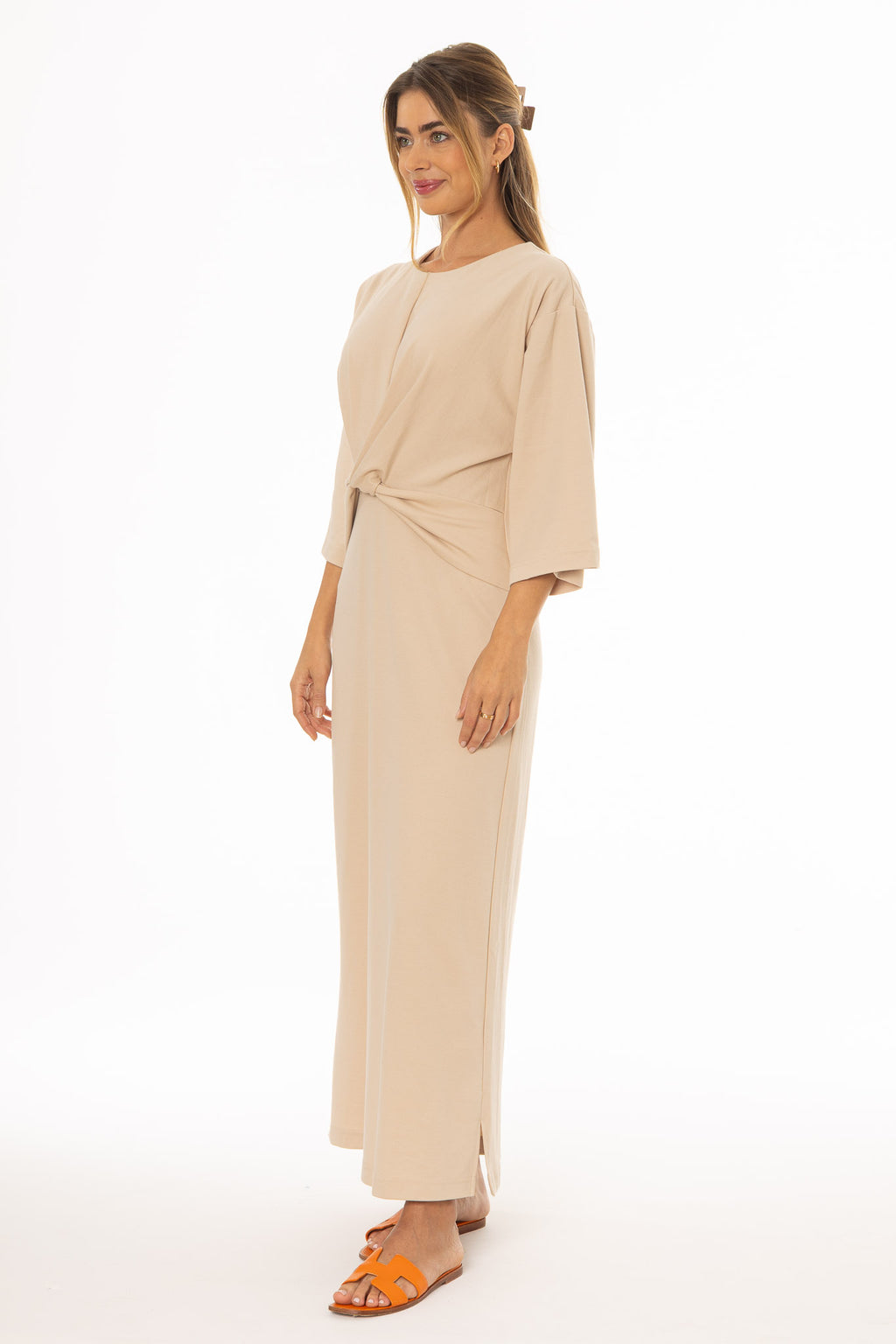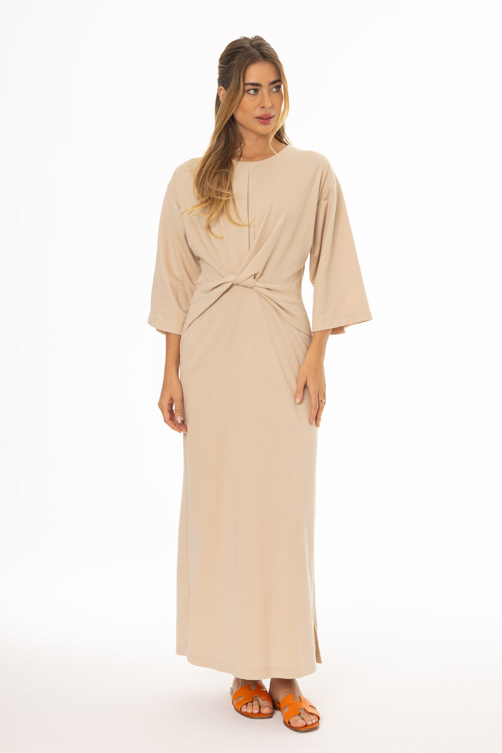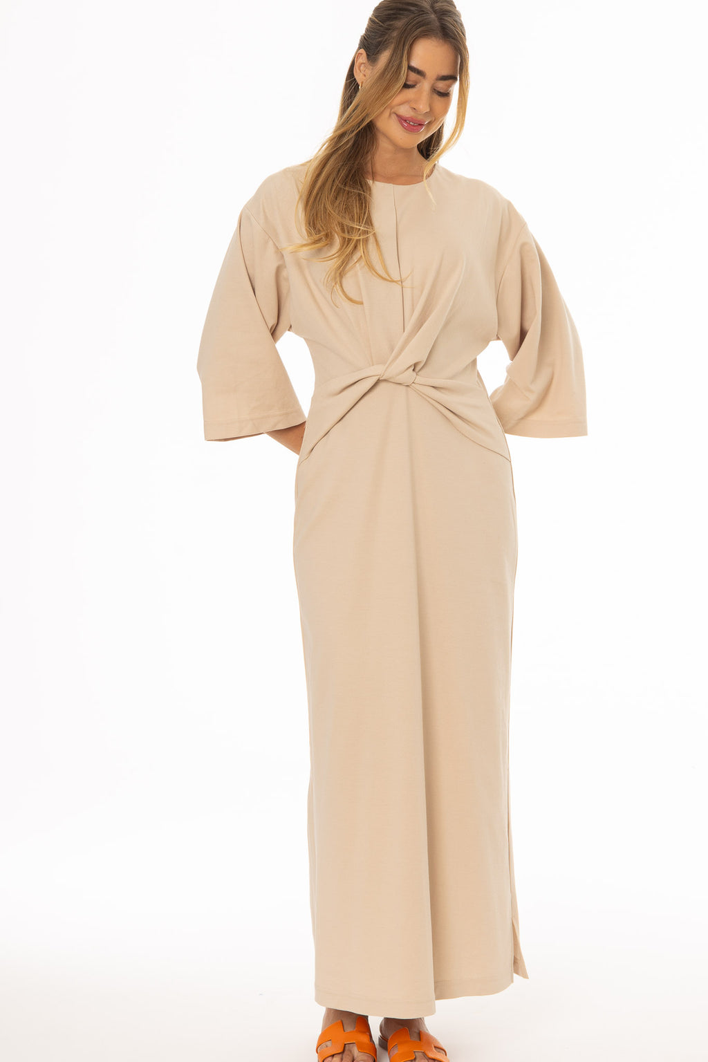 Sand Front Tie Knot Maxi Dress