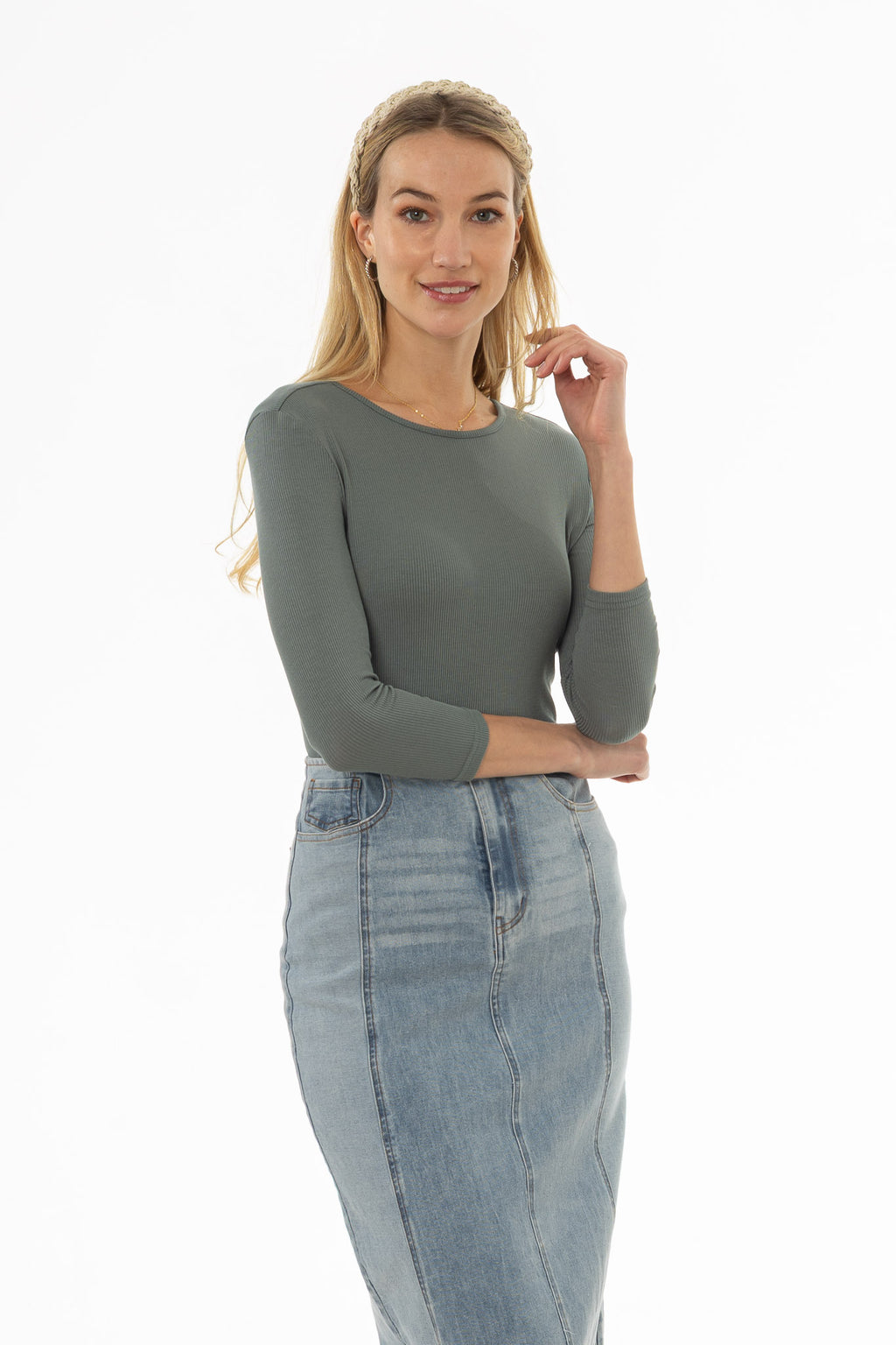 Seafoam Ribbed Round Neck 3/4 Sleeve T-Shirt