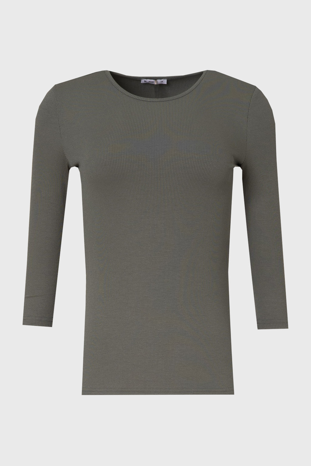 Ribbed Round Neck 3/4 Sleeve T-Shirt