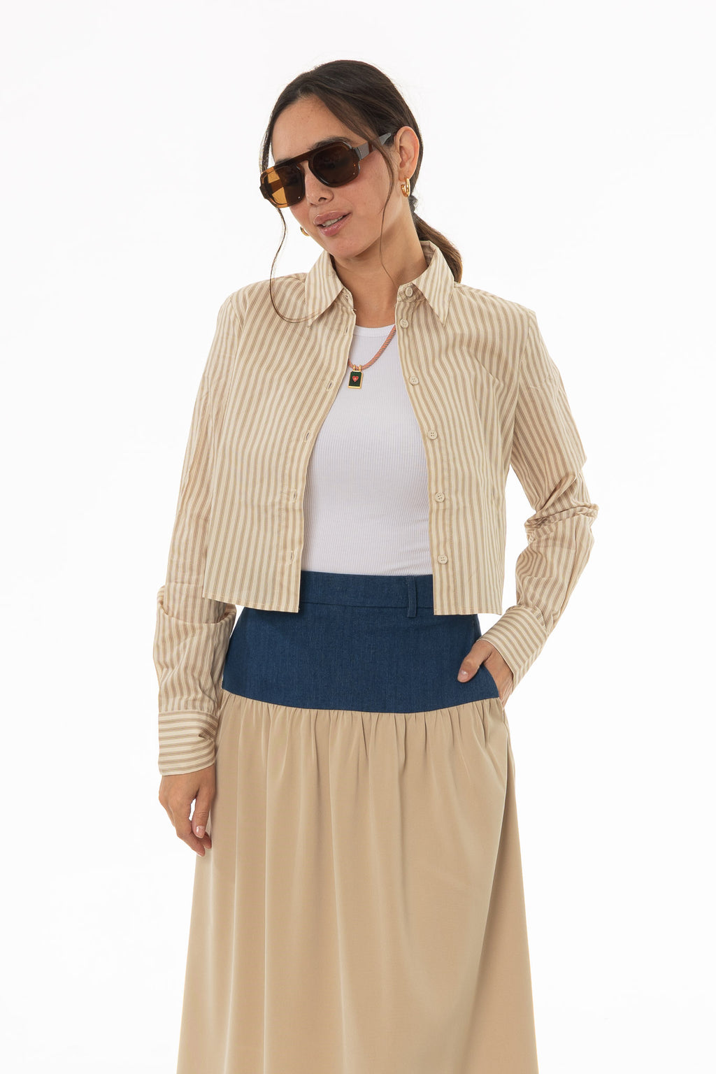 A cropped blouse designed to pair perfectly with our Double Striped Cotton Maxi Skirt. The stripes add a fun touch while keeping the look relaxed. Great for sunny afternoons and vacation dinners.
