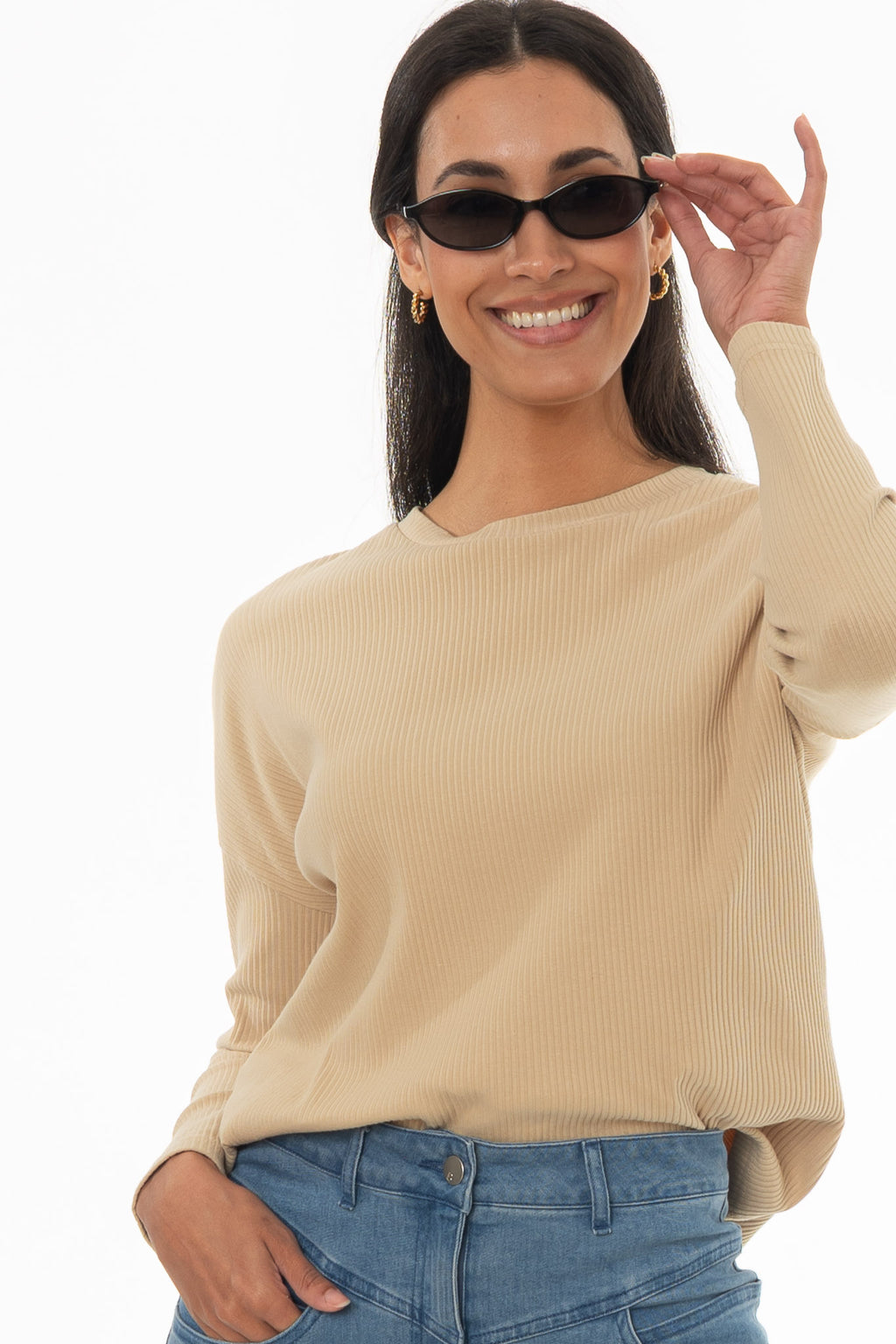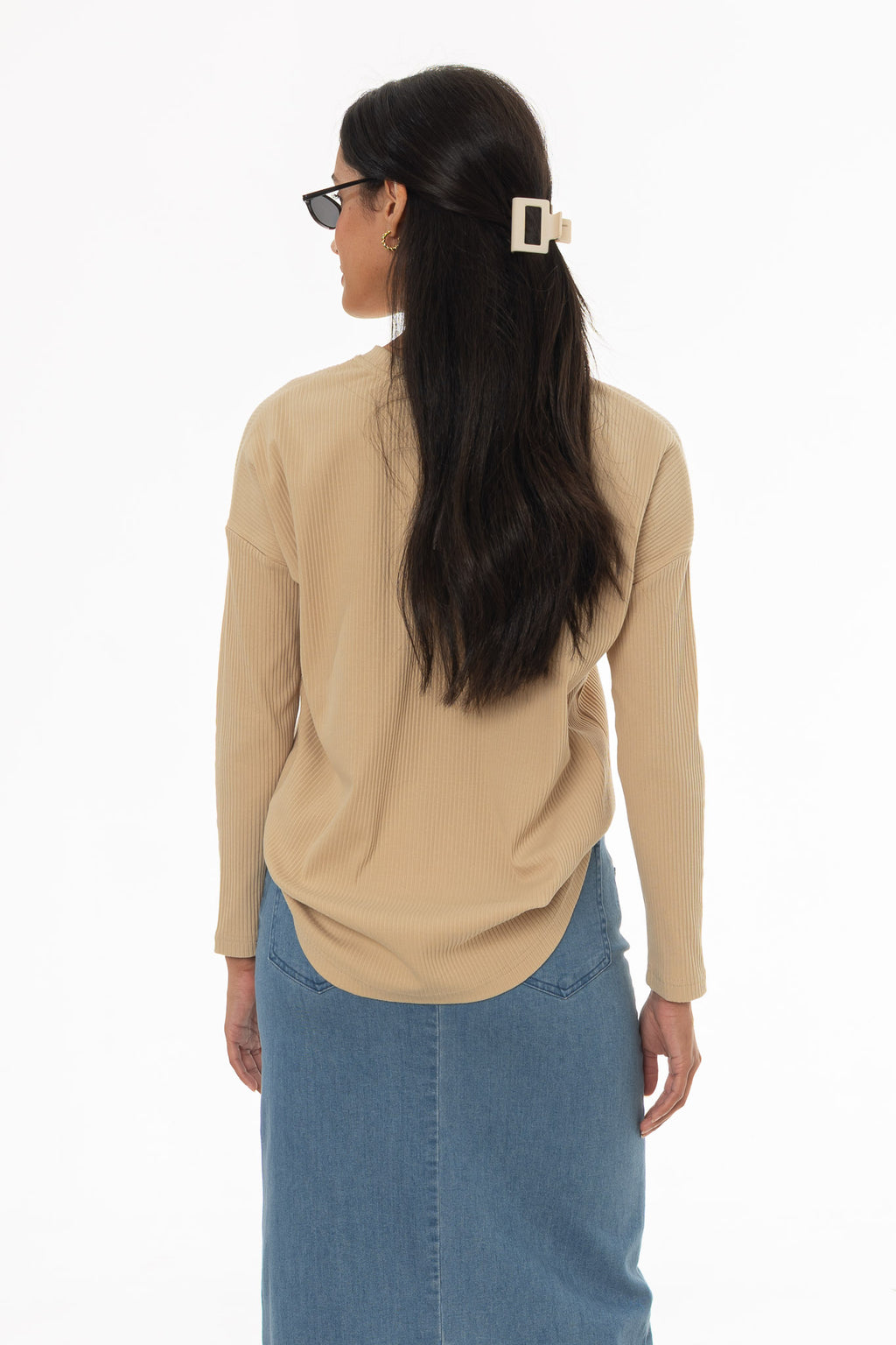 A relaxed tee with dolman sleeves that drape comfortably. Pair it with a printed skirt or a denim maxi for afternoon errands or casual meet-ups. Easy to style and easy to wear.