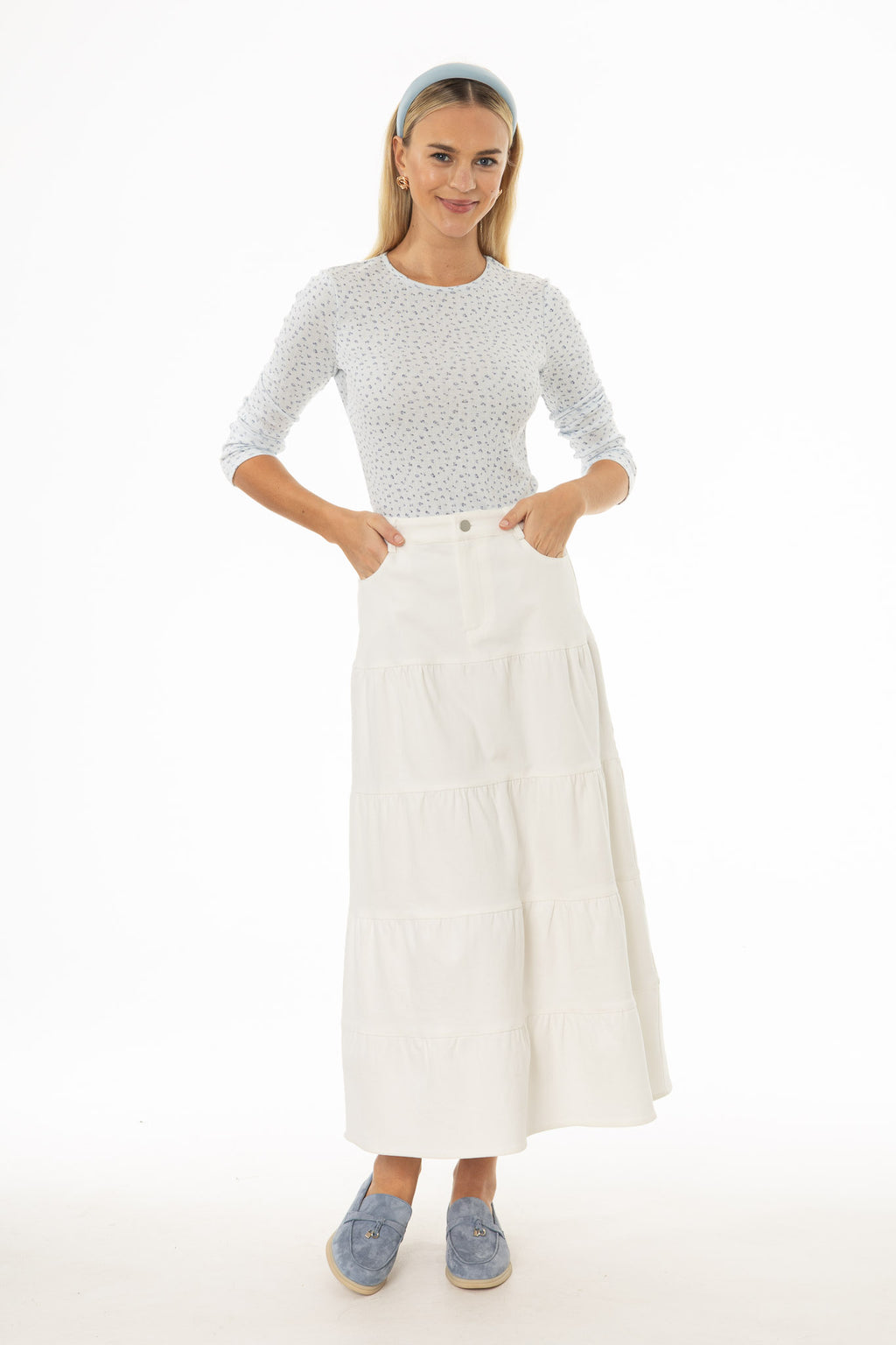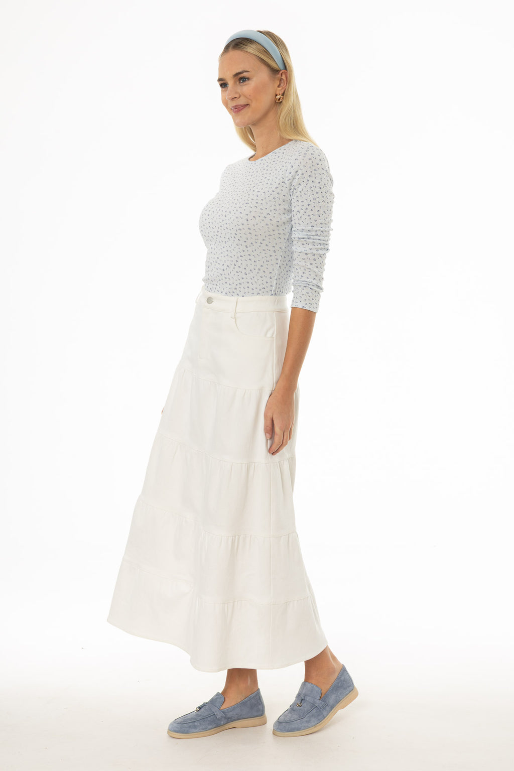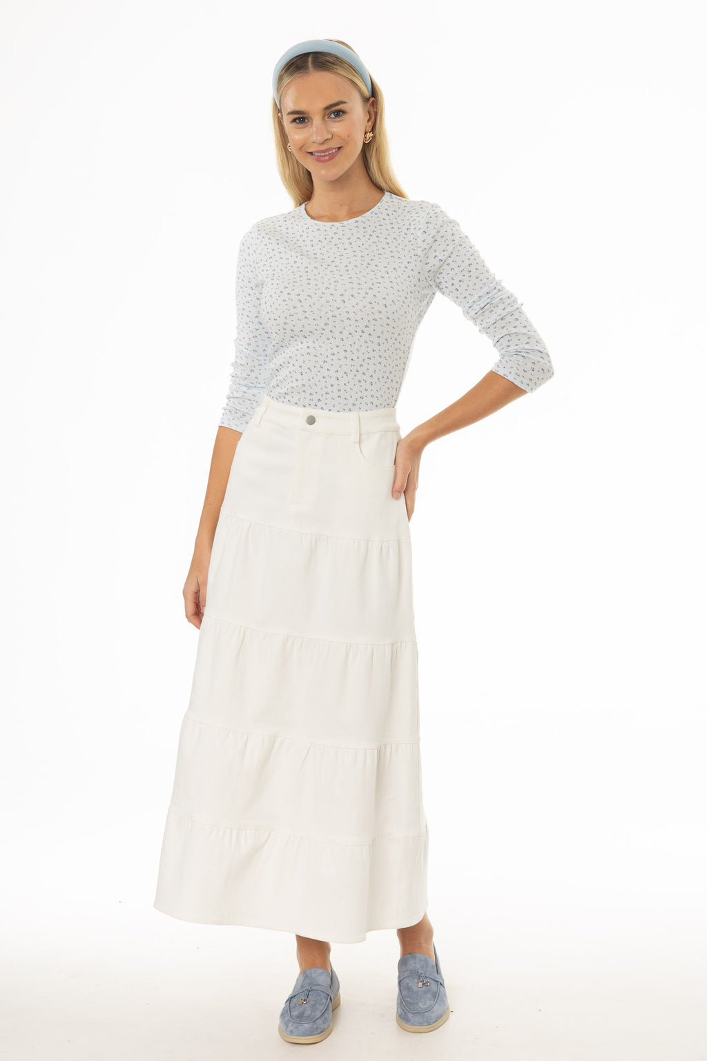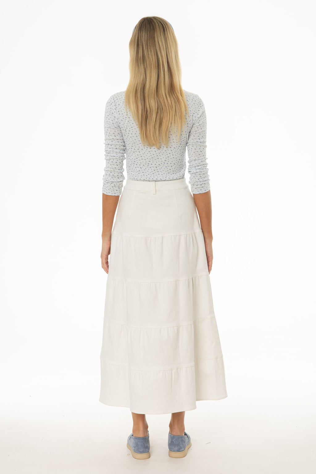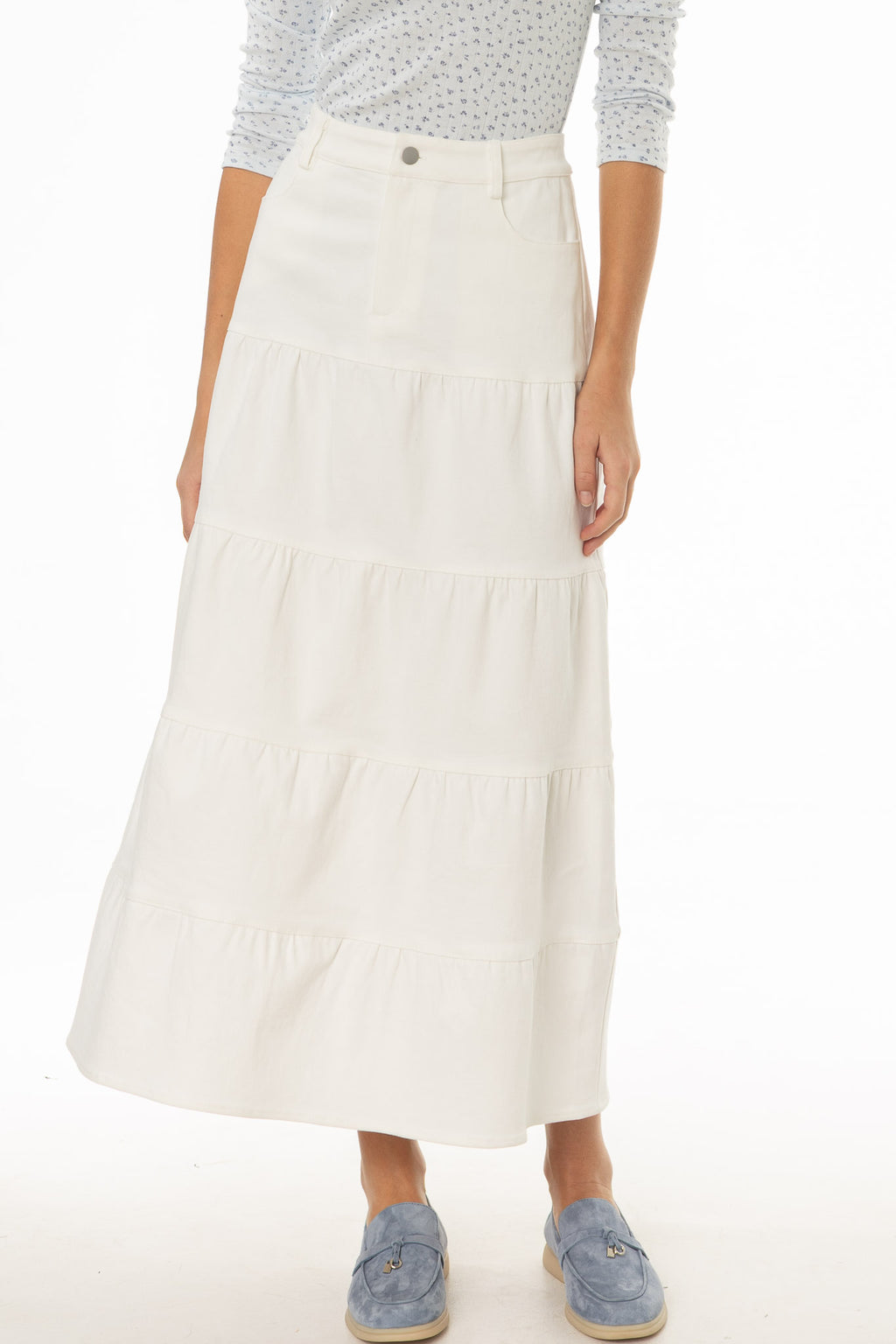 Tiered Denim Maxi Skirt